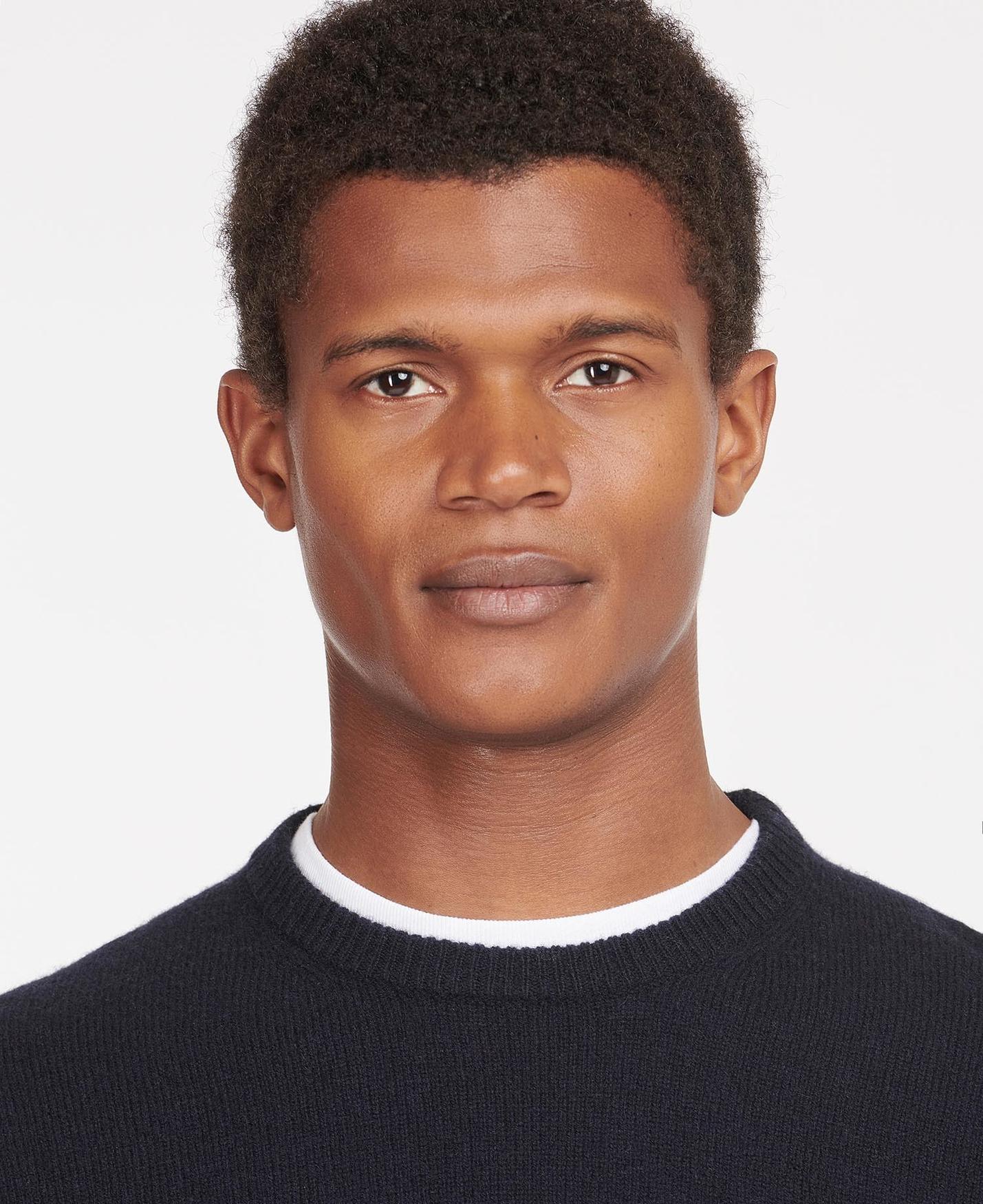 Barbour Patch Crew Strik i farven Navy er en klassisk og alsidig tilføjelse til enhver herregarderobe. Strikken er fremstillet i 100% blødt, let meleret uld, hvilket sikrer både varme og komfort på køligere dage. Det diskrete melerede mønster og den naturlige farvetone giver trøjen et afslappet, men stilfuldt udtryk, der passer perfekt til både hverdag og fritid.