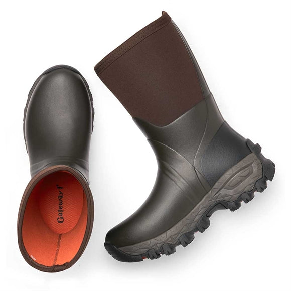 Gateway1 Woodwalker 12" er en gummistøvle med neoprenskaft. Den øverste del af skaftet er lavet af neopren, der kan bukkes ned efter behov. Neopren er et strækbart materiale og derfor har støvlen god pasform omkring læggen. Støvlerne er foret med 4 mm neopren, som har en isolerende funktion. Sålen er lavet med en behagelig EVA stødabsorbering, og en god robust ydersål, der sikrer dig et godt greb i underlaget.