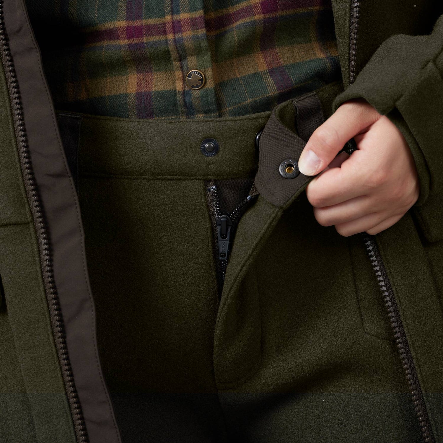 Metso Hybrid-bukserne er lavet i en strækbar, åndbar og meget lydsvag uldblanding, der har fået Bionic Finish ECO®-behandling, så ulden er ekstra vand- og smudsafvisende. Jægere har til alle tider foretrukket at jage i uldstof, fordi ulden er naturligt varmeregulerende og samtidig et meget lydløst materiale at pürsche i.