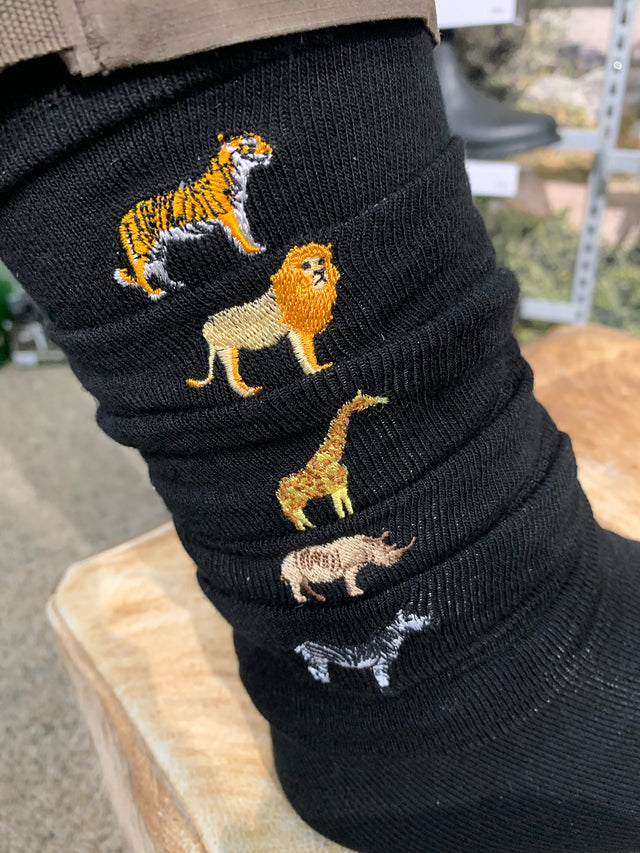 Find din 5-pak med Nordhunt Bamboo strømper i sort med eksotiske dyremotiver og opdag forskellen med bambustekstil i dag!