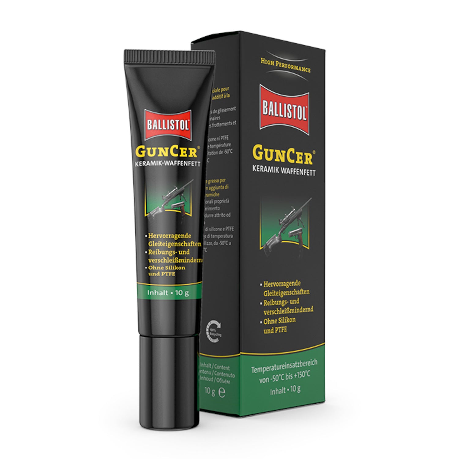 Ballistol GunCer keramik-våbenfedt er en smøreløsning i absolut topklasse – udviklet til dig, der stiller kompromisløse krav til dit udstyr. Den avancerede formel indeholder keramiske partikler, som sikrer en ekstremt slidstærk og varmebestandig smørefilm, der beskytter selv under højt tryk og ved intensiv brug. Det gør GunCer ideelt til præcisionsrifler og våben, hvor mekanisk belastning og temperaturudsving er en del af hverdagen.