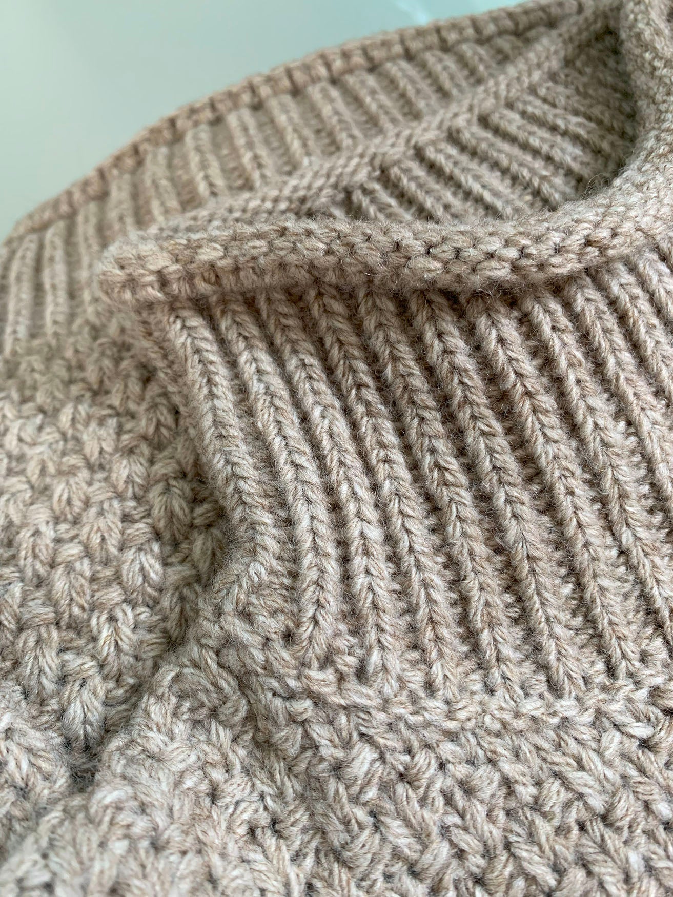 Trøjen er strikket i en slidstærk og formstabil blanding af akryl, uld og nylon. Akryl bidrager med lethed og holdbarhed, mens ulden tilfører naturlig varme og temperaturregulering. Nylonen giver ekstra styrke og elasticitet, så du får en trøje, der holder formen og ser godt ud – selv efter mange ganges brug.