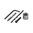 Sættet fungerer ved, at du borer et hul i bunden af det fastsiddende hylster, skruer en medfølgende tap i og trækker hylstret ud ved hjælp af den medfølgende afstandsbøsning og skrue. Alle nødvendige dele medfølger, og processen kan udføres med almindeligt værktøj fra værkstedet – du behøver ikke specialmaskiner eller ekstra udstyr.
