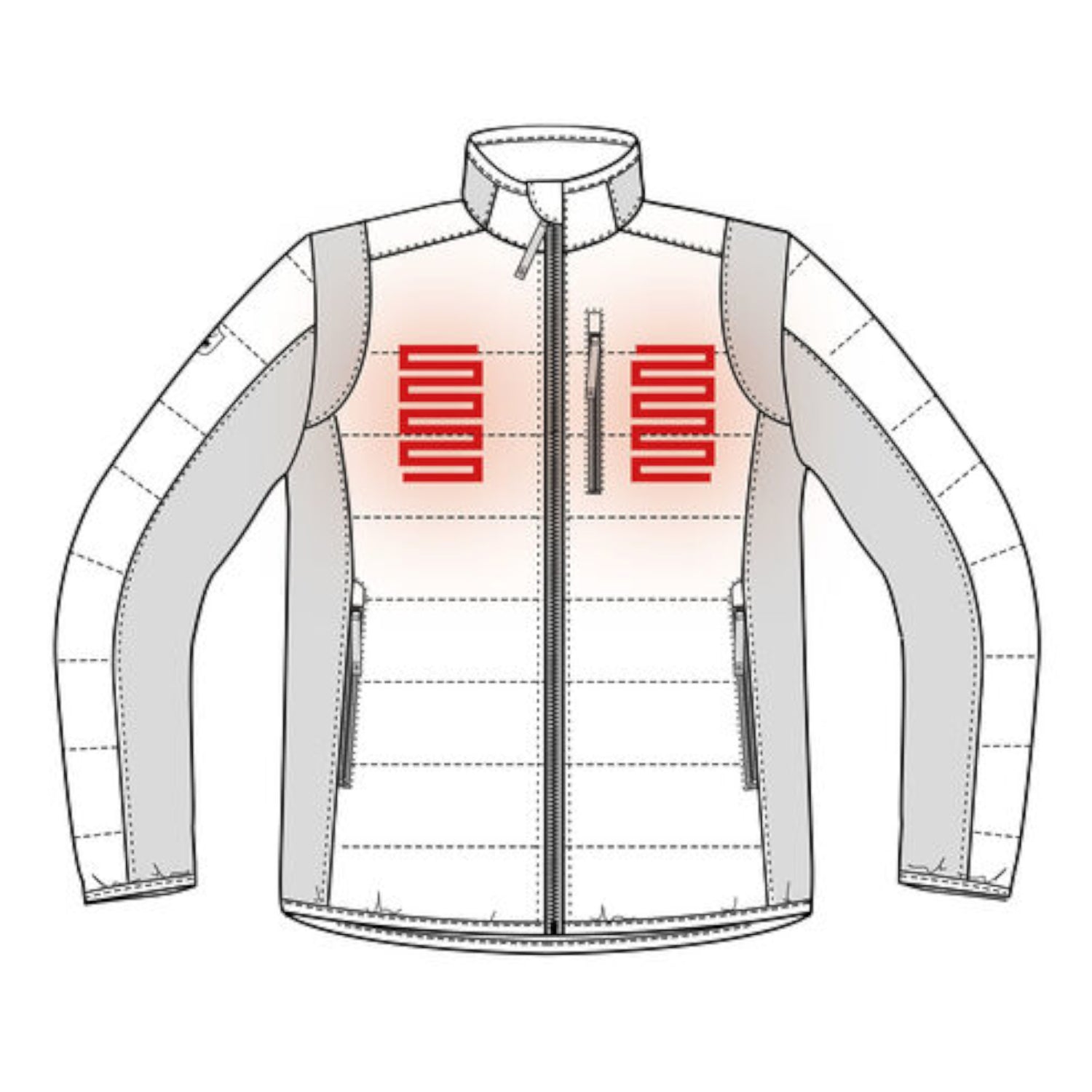 Det quiltede design i front, bag og på dele af ærmerne sørger for en stabil isolering, mens det strækbare kontrastmateriale i siderne og under armene sikrer god pasform og fleksibilitet. Jakken er udstyret med både udvendige og indvendige lynlåslommer, så du nemt kan organisere dit udstyr og holde vigtige ting tæt på kroppen. Elastisk kantbånd ved krave, ærmer og bund holder vinden ude og varmen inde.