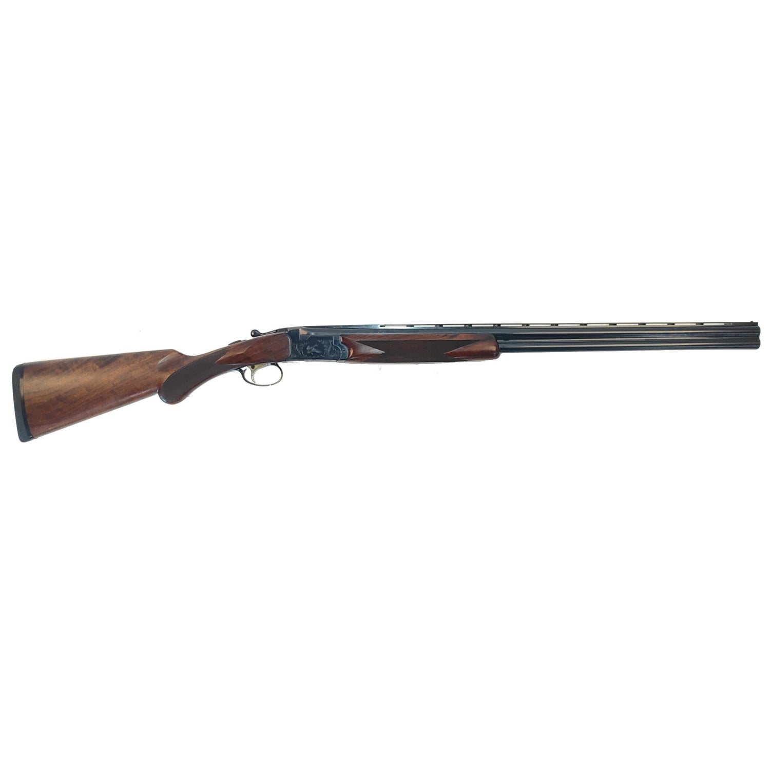Den sortbrunerede baskyle er smukt udført med fine graveringer, der tilfører geværet et eksklusivt og traditionelt udtryk. Samtidig fremstår finishen gennemført og harmonisk, hvor samspillet mellem metal og træ giver et stilrent helhedsindtryk.