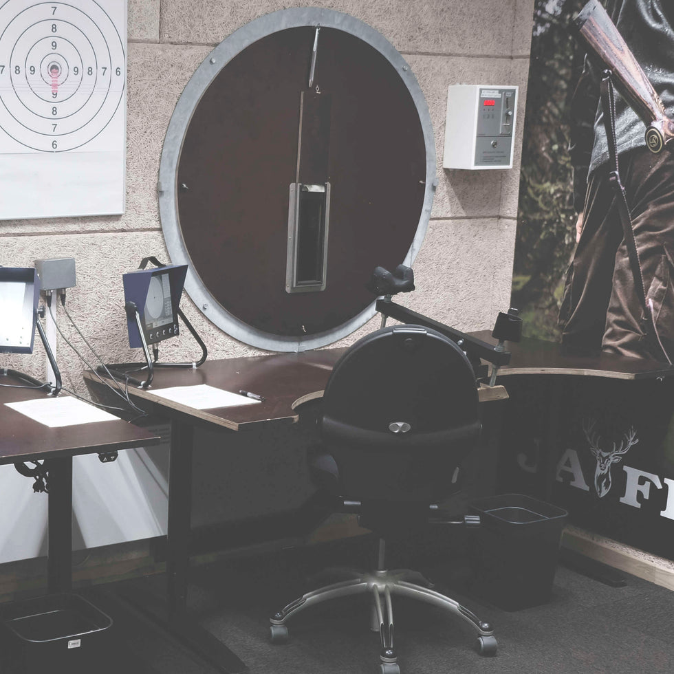 Du er altid velkommen i vores underjordiske skydebane, som har åbent i butikkens åbningstid: