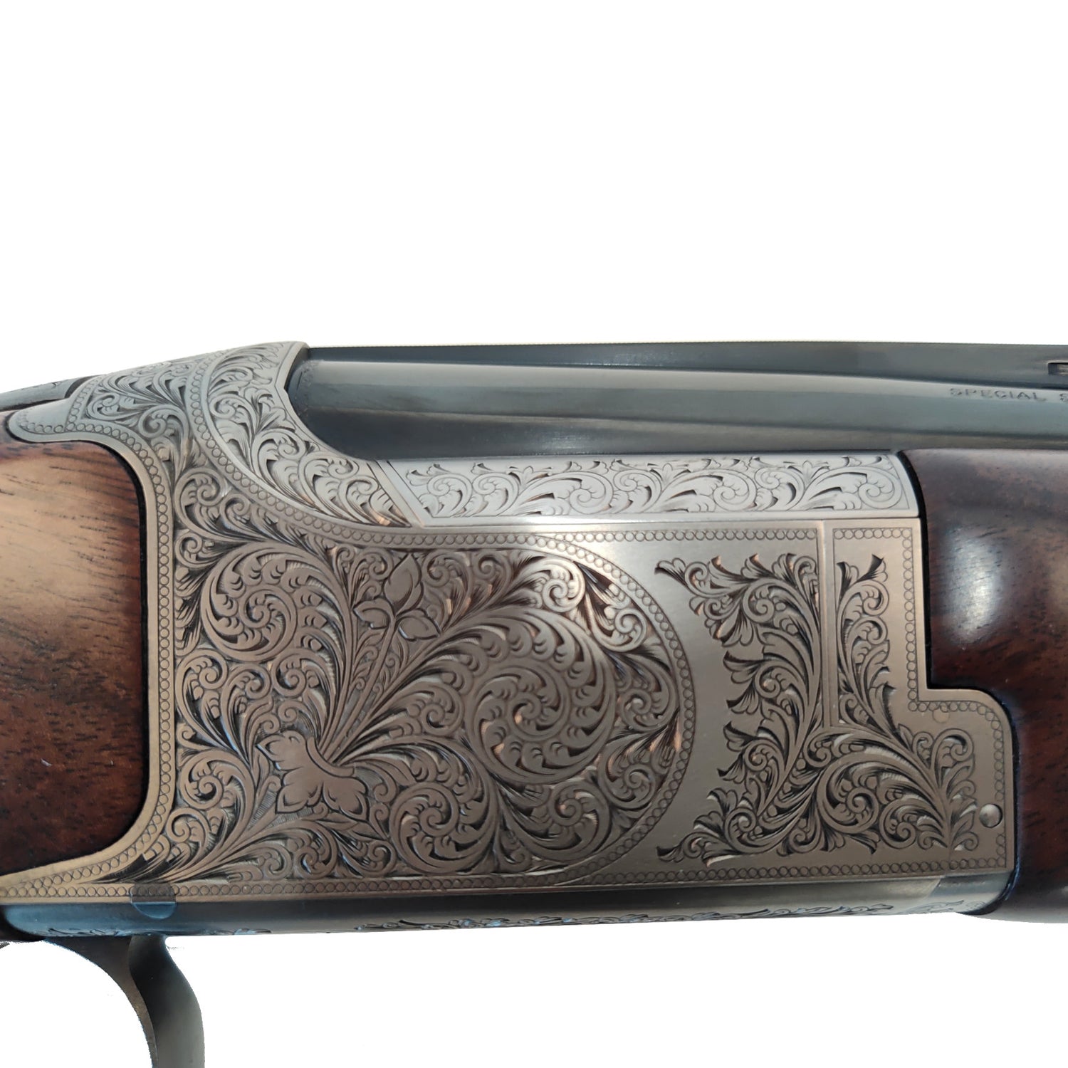 Grade 5-udgaven udmærker sig ved sit smukke valnøddeskæfte med markant åretegning og dyb glød samt en rigt graveret låsekasse, der understreger geværets eksklusive karakter. Træ og metal fremstår harmonisk afstemt, og den generelle forarbejdning vidner om høj kvalitet i både materialevalg og finish.