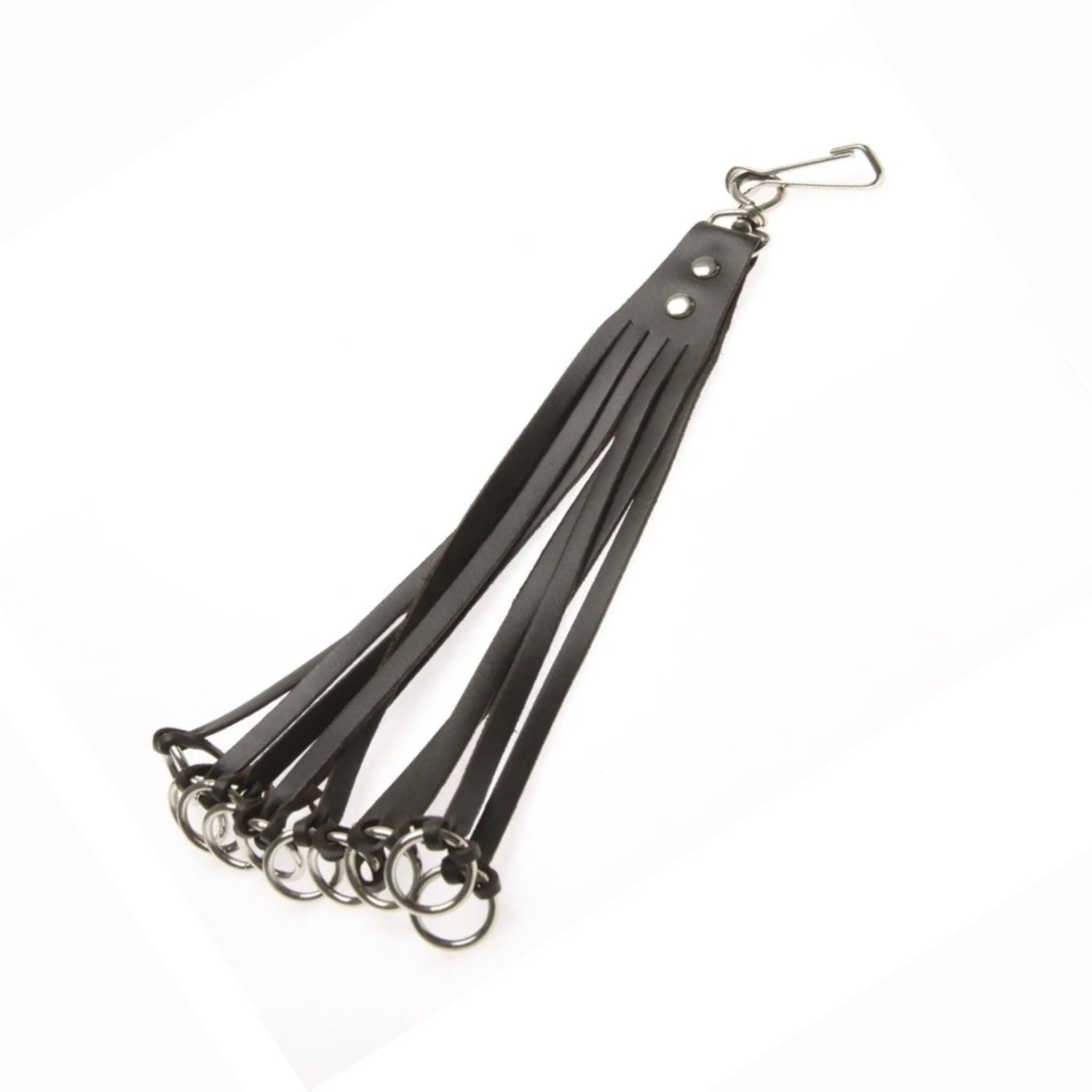 Klassisk fuglegalge i læder med messingringe samt karabin til fastgørelse i bælte, bæltestrop eller på en game bag.