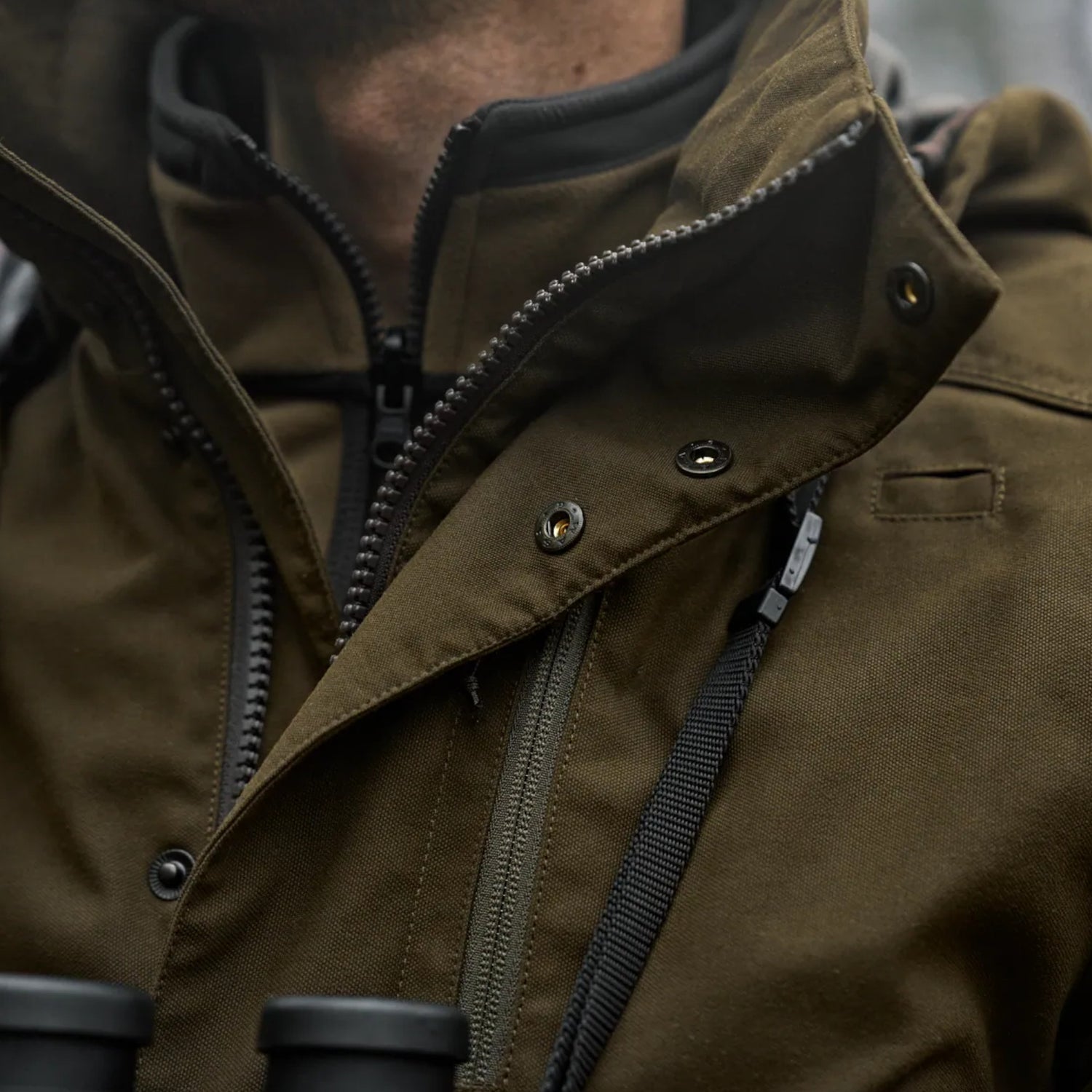 Designet er gennemtænkt med radio-lomme, inderlomme, justerbar talje, bund og manchetter samt aftagelig hætte. En to-vejs lynlås sikrer nem ventilation og bevægelsesfrihed, mens Pro Hunter-seriens 5-års garanti giver ekstra tryghed i din investering. Denne jakke er skabt til at levere – år efter år, jagt efter jagt.