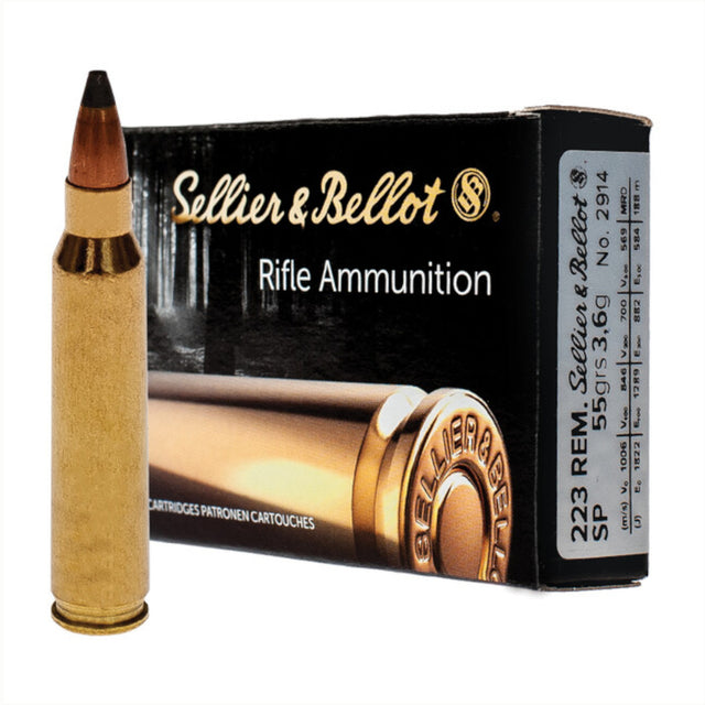 Sellier & Bellot FMJ i kaliber .223 Rem er en driftssikker og præcis patron, der er velegnet til både træning og skydning på bane. Den 55 grains fuldkappede kugle (Full Metal Jacket) sikrer stabil ballistik og gennemført præstation uden unødig fragmentering, hvilket gør den ideel til øvelsesskydning og funktionstest af rifler. Ammunitionen er kendt for sin ensartede kvalitet og problemfri funktion i både halvautomatiske og bolt-action rifler, og den leveres med den høje standard, som Sellier & Bellot er kendt for.
